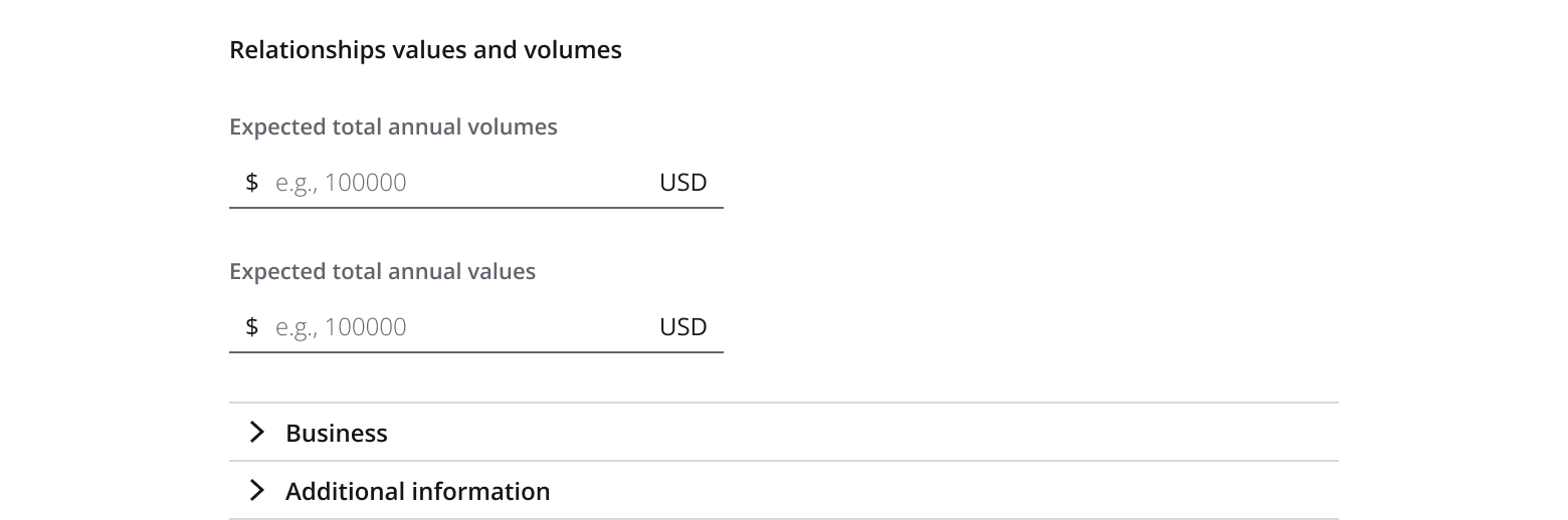 These use accordions to progressively reveal fields in long, dense forms. Sections aren't mutually exclusive: users can expand multiple sections to compare.