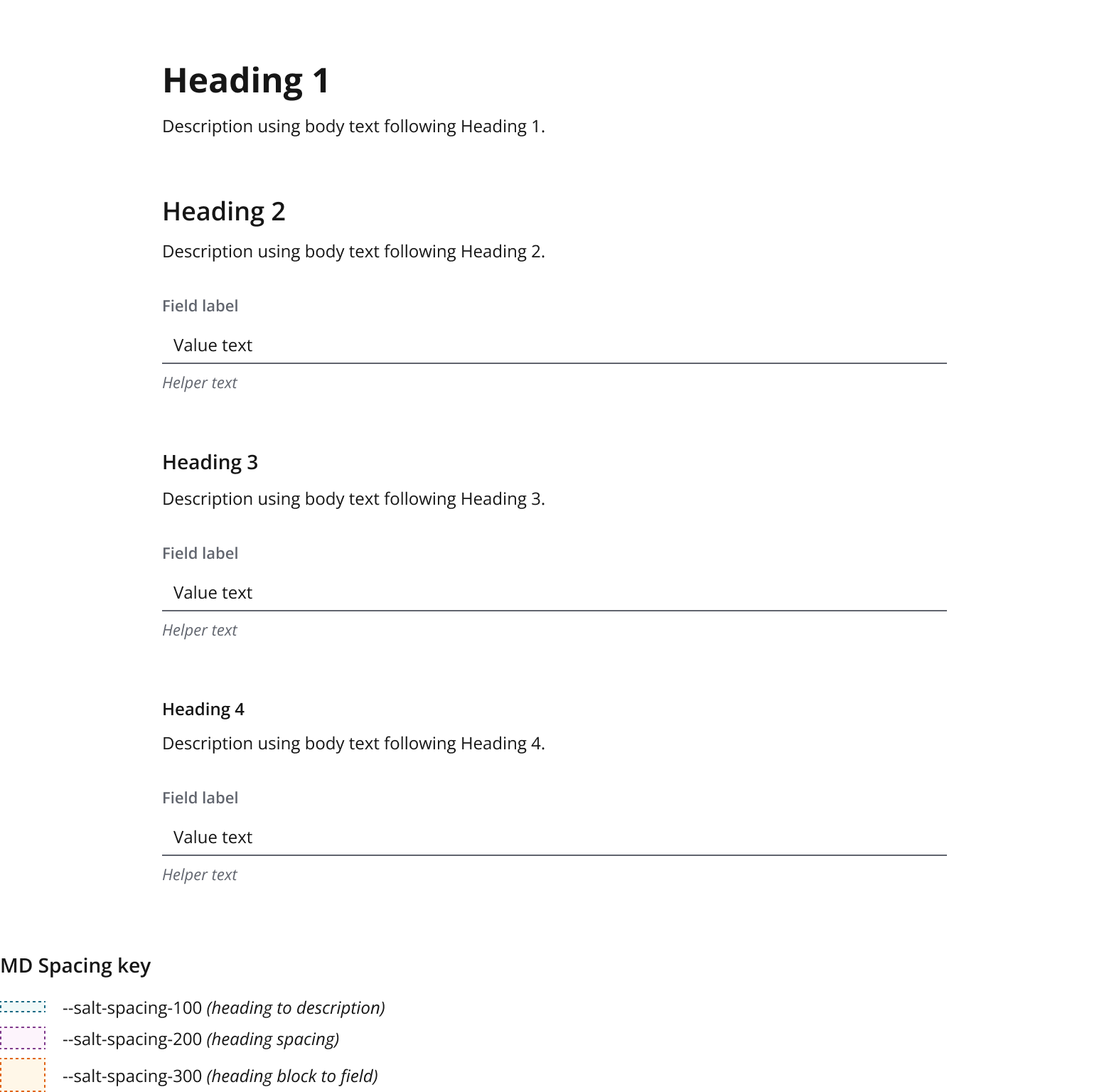 • If your heading is followed by a description, spacing is reduced to reinforce the relationship between heading and description.