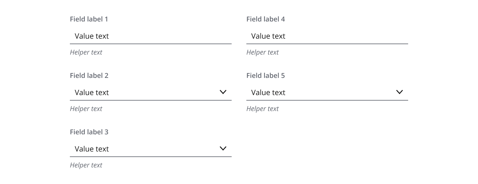 To keep busy forms as simple as possible, choose a combination of these fills to achieve a visual hierarchy. Rather than adding background colors, if you need further visual separation, use: